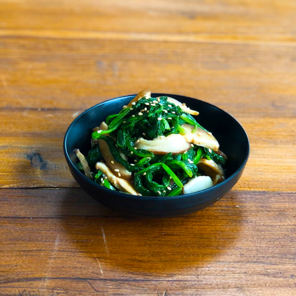 Spinach and shiitake mushrooms tossed in sesame broth.